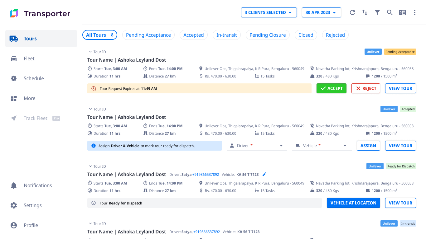 Shippers who are clients of Locus outsource the Tier-3 deliveries to third-party transporters and get updates about deliveries in informal channels like whatsapp.